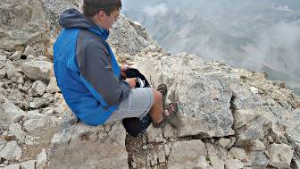 Nella foto in alto una foto scattata da Paolo De Luca in una giornata di agosto 2015 sulla vetta Occidentale del Corno Grande (Gran Sasso) a 2912 m slm. Guardate "l’escursionista" ritratto con quali "scarpe" ha raggiunto i 3 mila metri! (questa è imprudenza allo stato puro!!!). Da non credere... Ancora ci si chiede come abbia fatto a scendere sano e salvo... considerando che la discesa è più insidiosa della salita perché sopraggiunge la stanchezza!