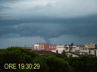 Sono circa le 19.30 quando cominciano a formarsi delle saccature sotto la linea continua delle nuvole, da una di queste si sfilacciavano piccoli pezzi che ad un tratto si sono congiunti formando una nube ad imbuto. La sua durata è stata brevissima, forse un minuto, e come è scesa è risalita dissipandosi in breve.