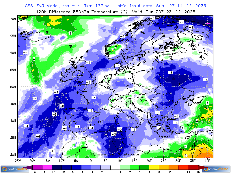 Europa, vicino atlantico e naturalmente l'Italia in questa immagine all'infrarosso (canale IR) del satellite MSG (Meteosat Second Generation) di Eumetsat elaborata da .... Leggi tutto...