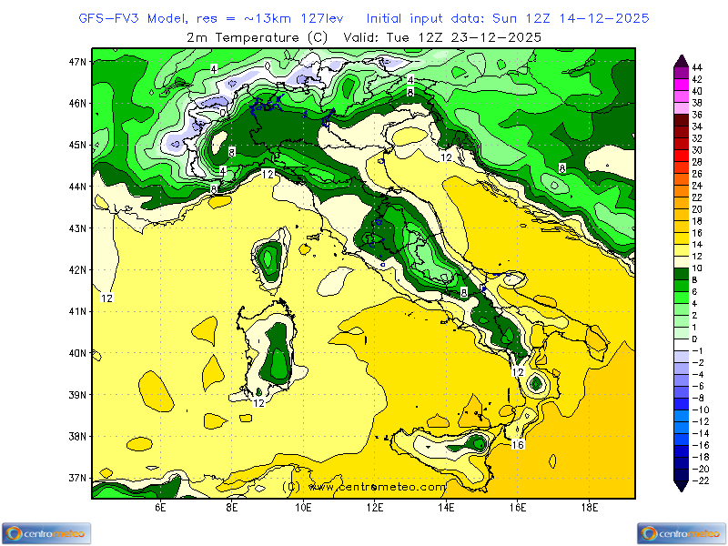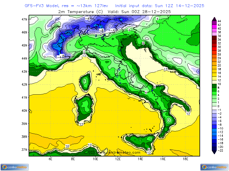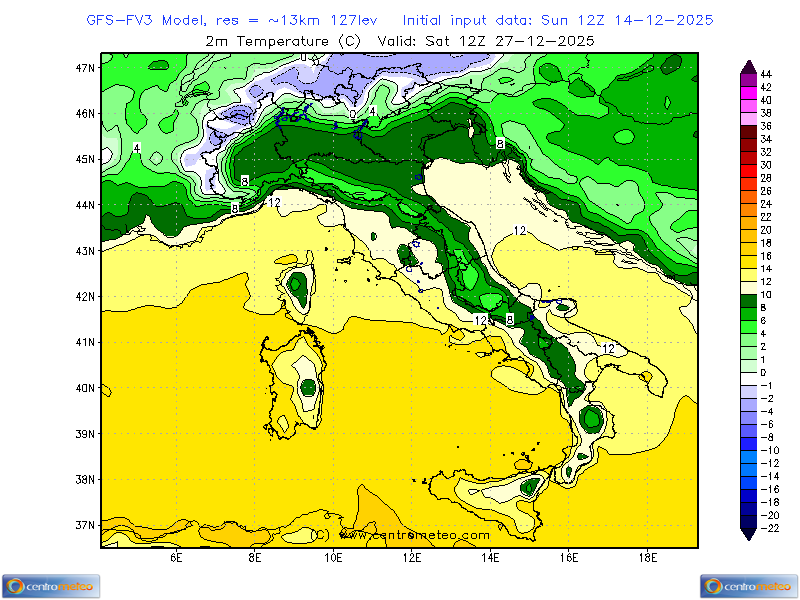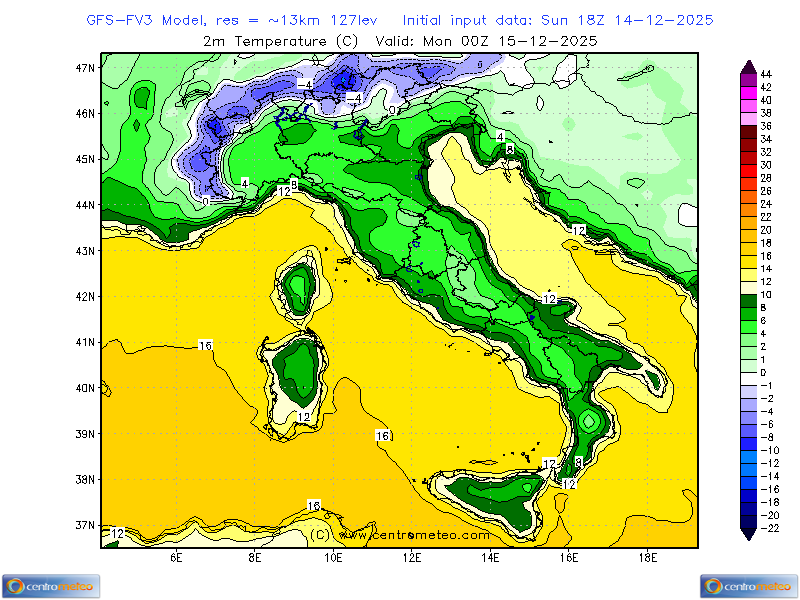 Precipitazioni attese dal modello ECMWF da Wetterzentrale per l'Italia
