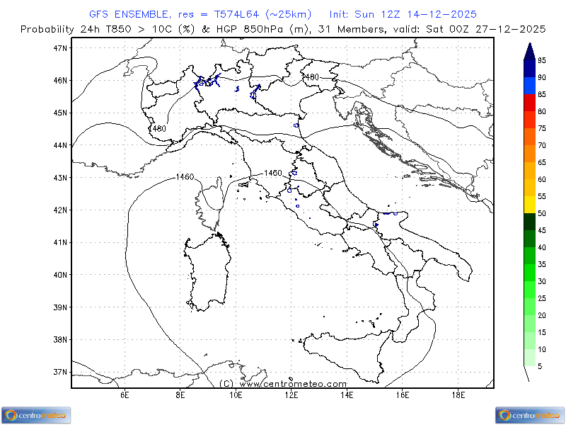 Pressione al suolo e geopotenziale 500hPa previsto dal modello canadese GEM.