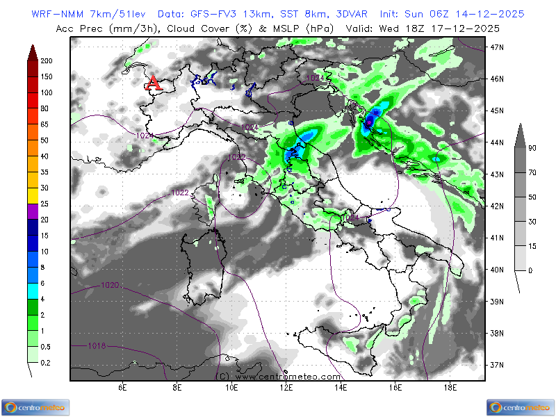 In questa mappa WRF-NMM-8km (GFS) per l'Italia, cerchiamo di estrapolare, assieme alla dew point... Leggi tutto...