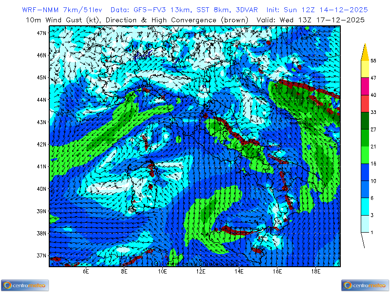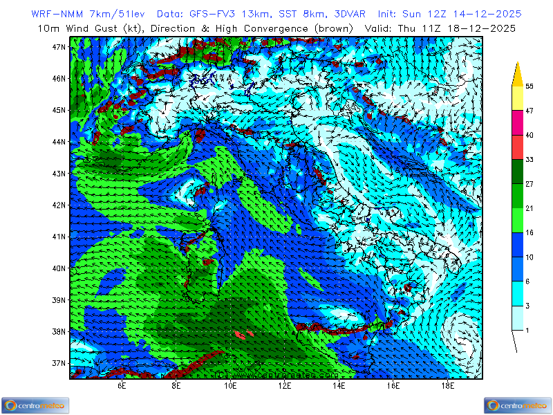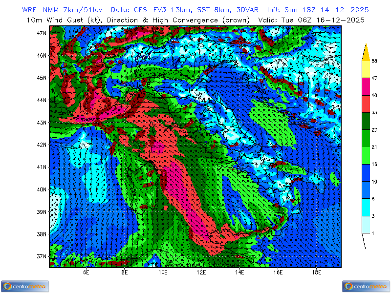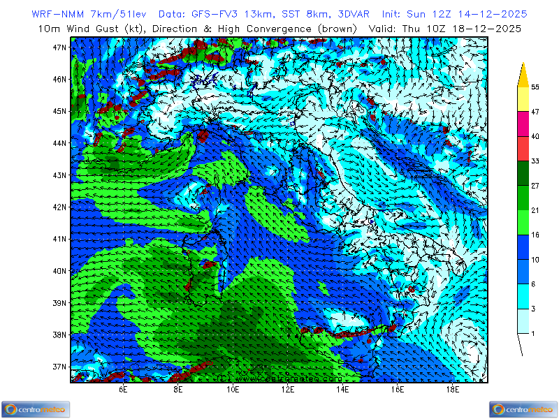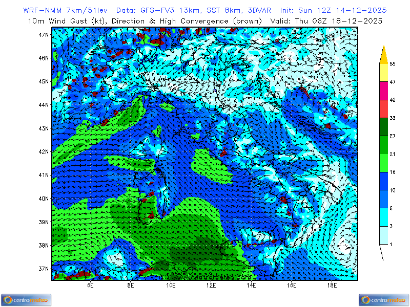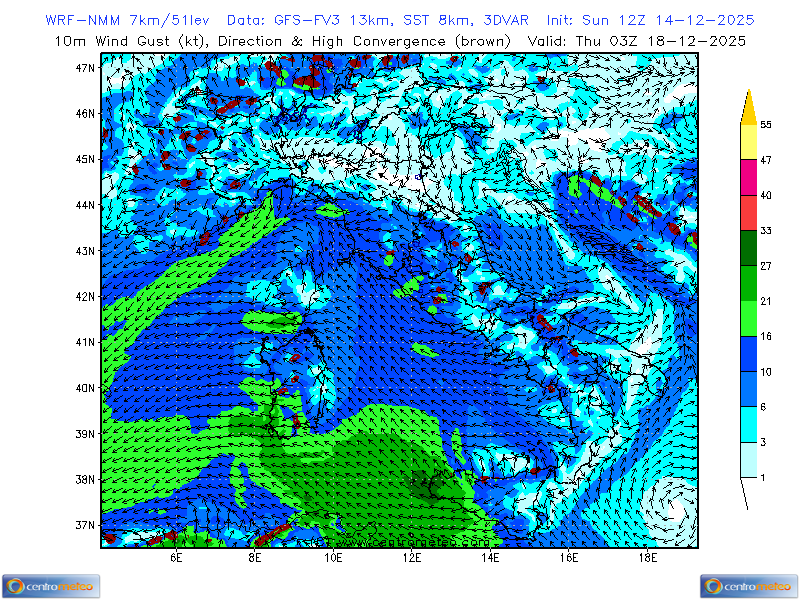 Mappa sull'Italia del modello non idrostatico ad alta risoluzione WRF ARW, inizializzato su GFS,... Leggi tutto...