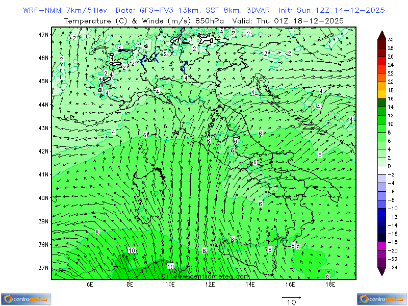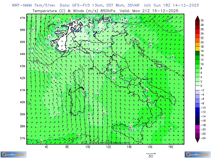 Mappe di analisi con la distribuzione della pressione al suolo e stato dell'atmosfera (geopotenziale e temperatura) a 500hPa.Analisi da assimilazione dati ECMWFAnalisi da... Leggi tutto...