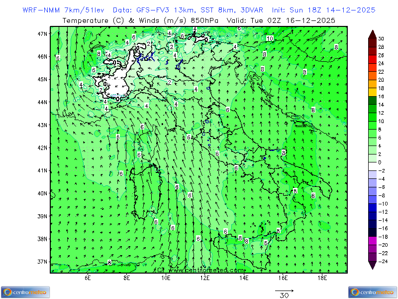 La temperatura del top delle nubi su parte dell'Europa centro-occidentale e il vicino atlantico in... Leggi tutto...