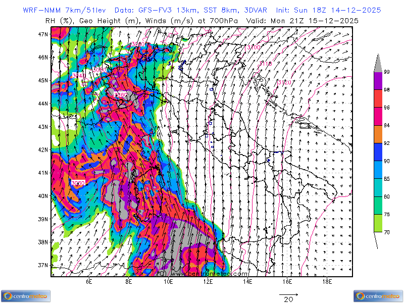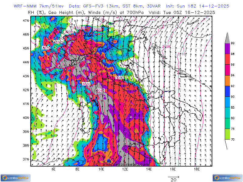 Il caso della città di Grosseto con l'Ensemble spaghetti del modello GFS. Geopotenziale a 500hPa e... Leggi tutto...