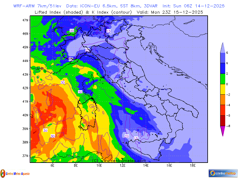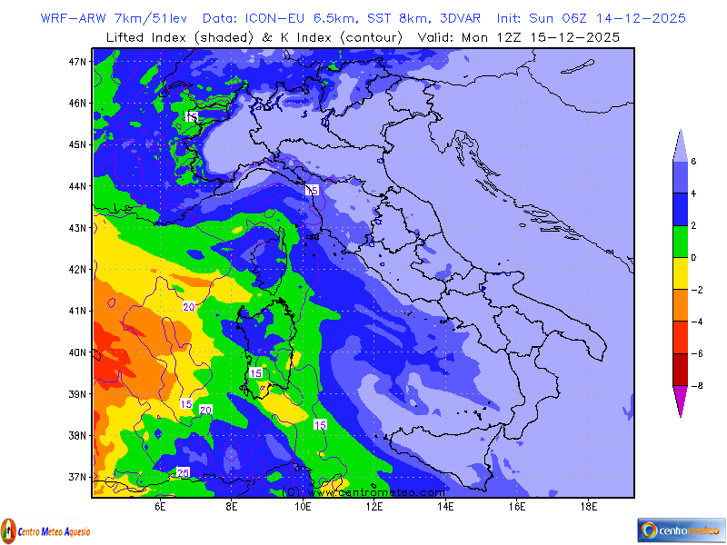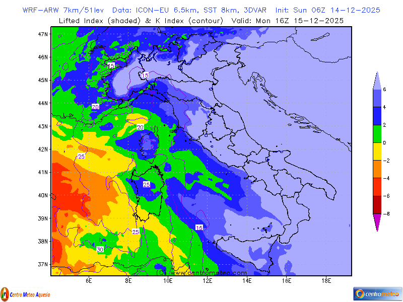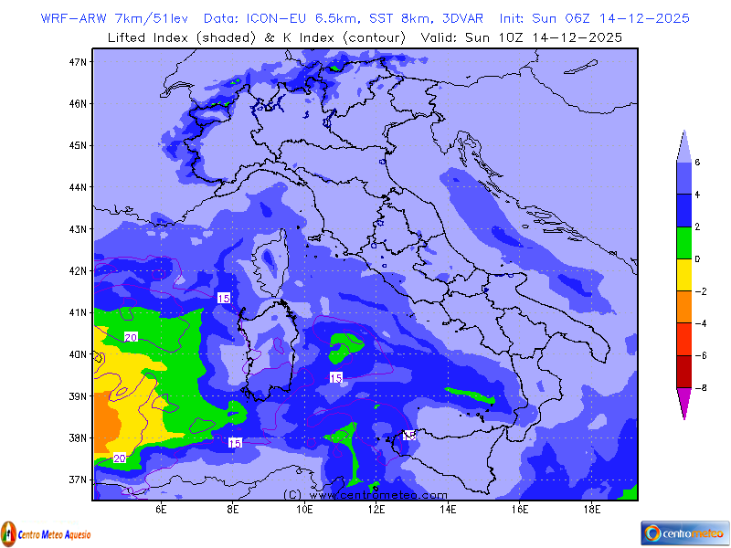 Su Ragusa, i radiosondaggi previsti dal modello fisico-matematico WRF-NMM