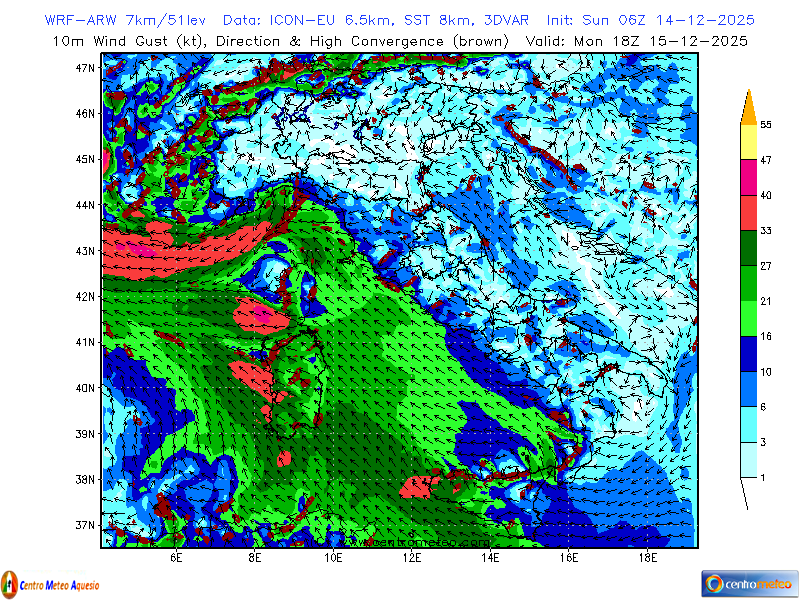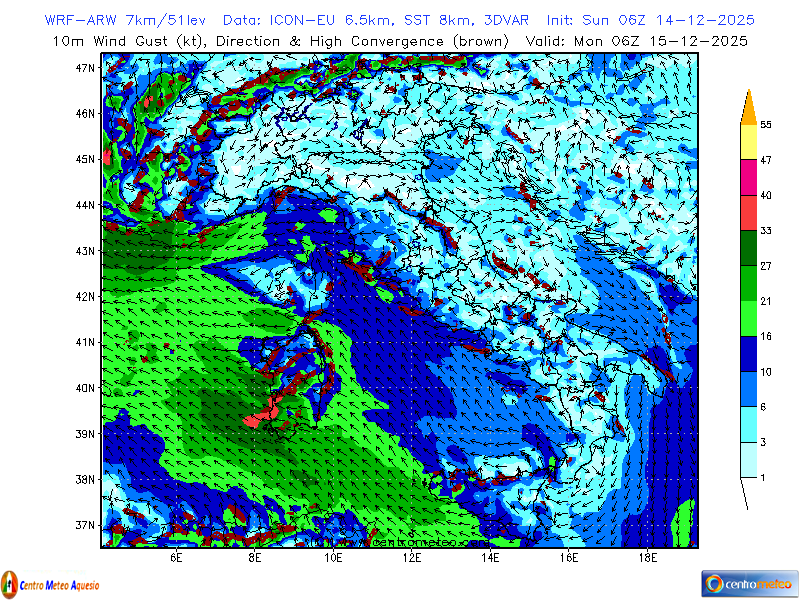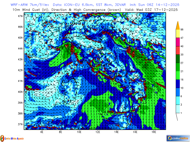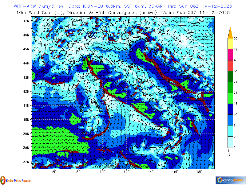 Navgem, il nuovo modello fisico matematico della Marina Americana. Neve accumulata in 12 ore e 0°C termico.