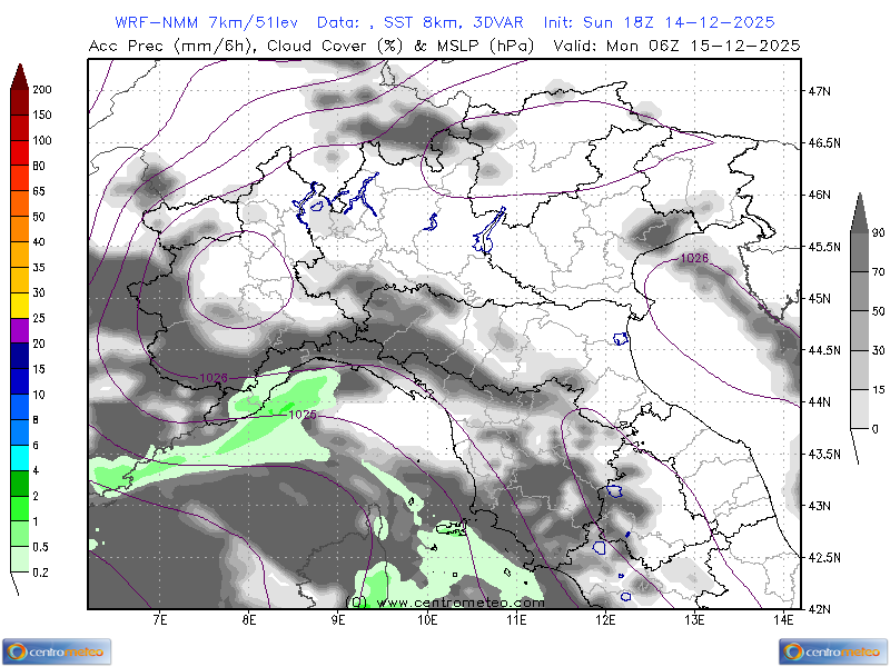 La mappa 700hPa del nostro modello WRF-ARW per il centro-nord italia con umidità relativa (RH) e... Leggi tutto...