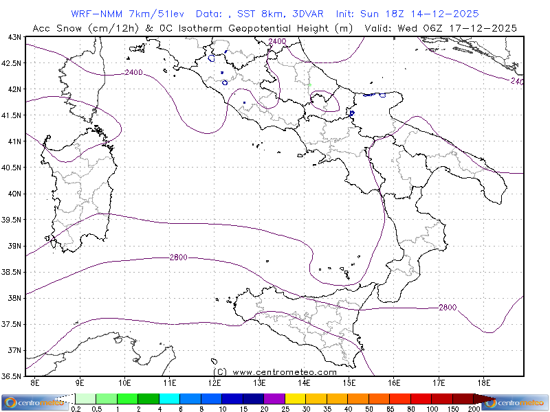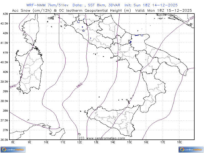 Temperatura a 2m attesa dal modello ECMWF da Wetterzentrale per l'Italia