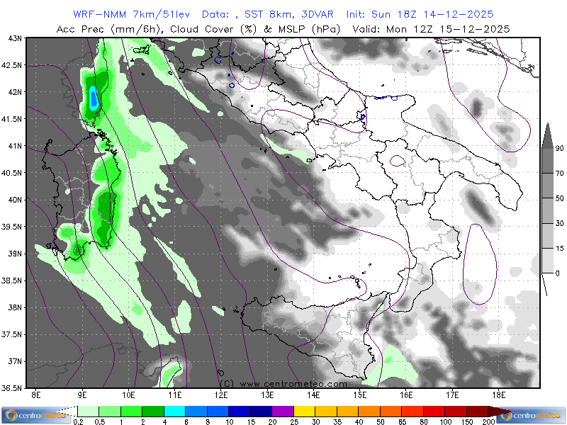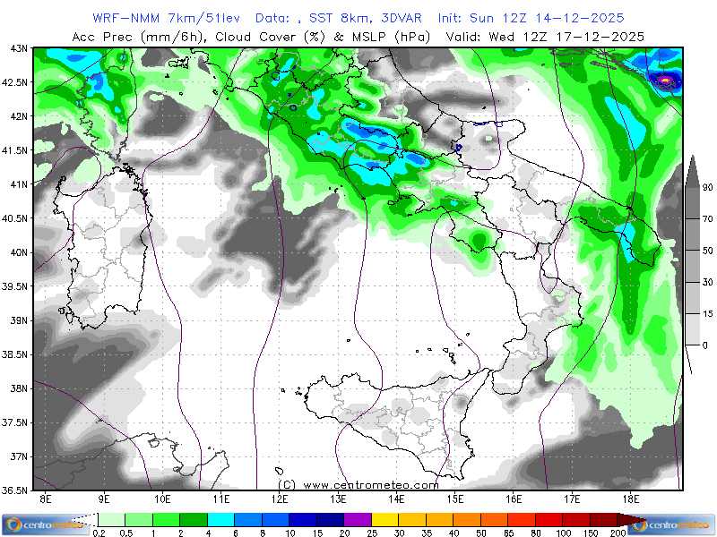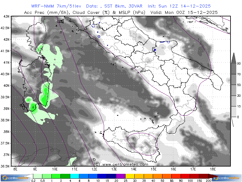 Modello WRF con la mappa sull'Italia dell'umidità relativa e della circolazione dei venti... Leggi tutto...