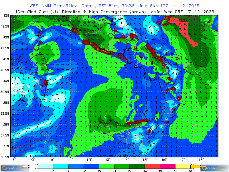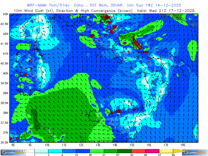 Mappa, Centro-Sud Italia, del modello WRF-ARW (inizializzazione: GFS) con altri due classici indici... Leggi tutto...