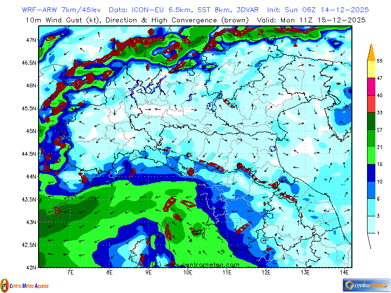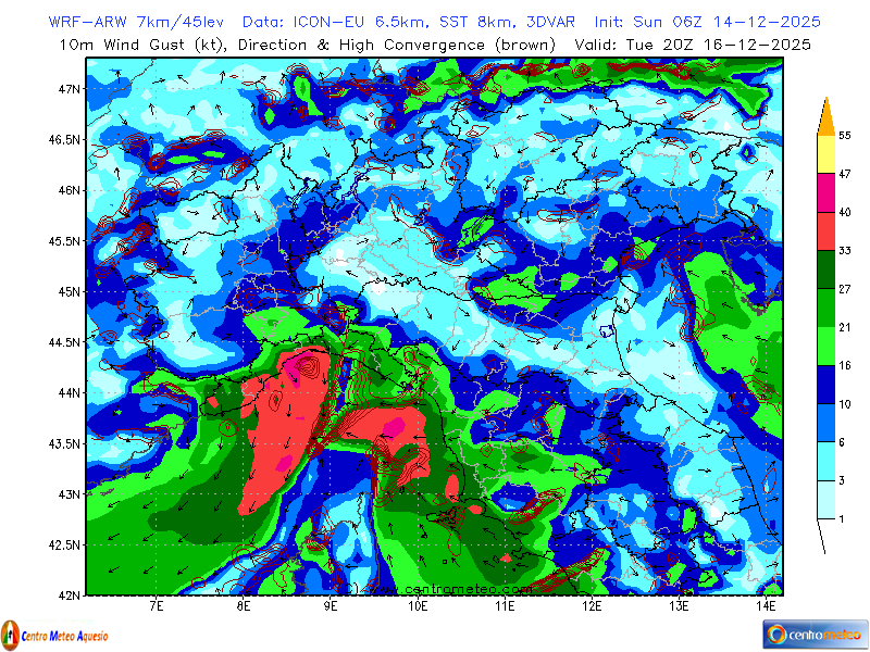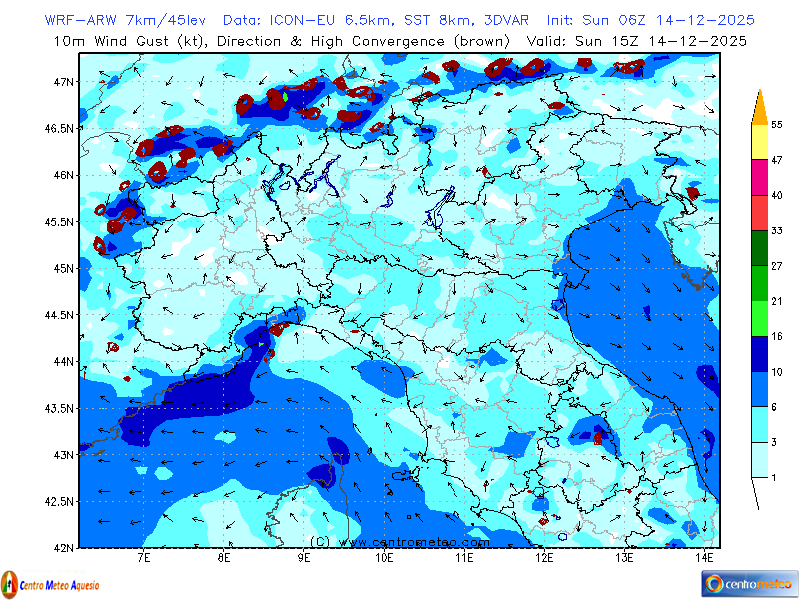 Immagine WRF Wind 10m (centro-sud) - ARW by ICON