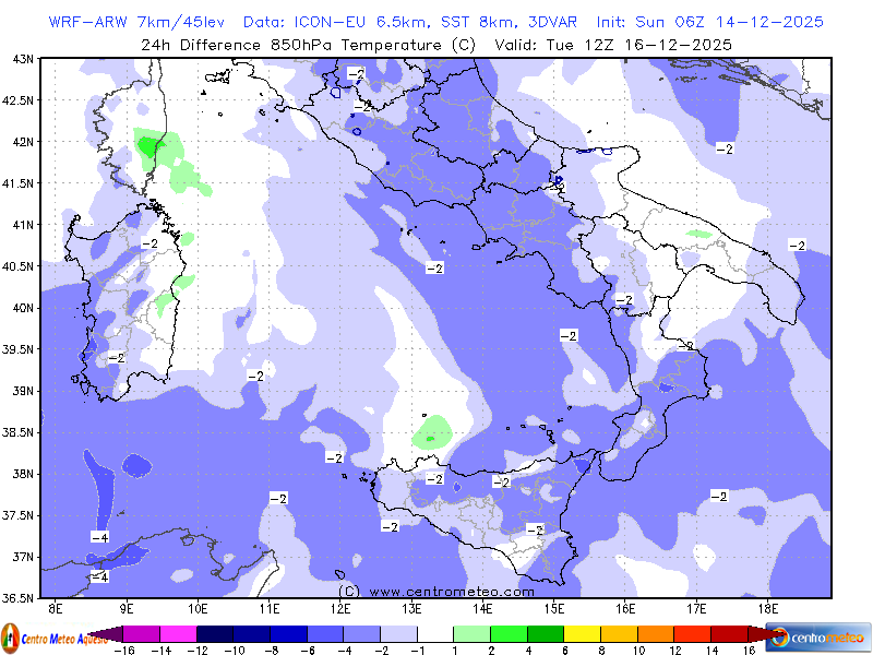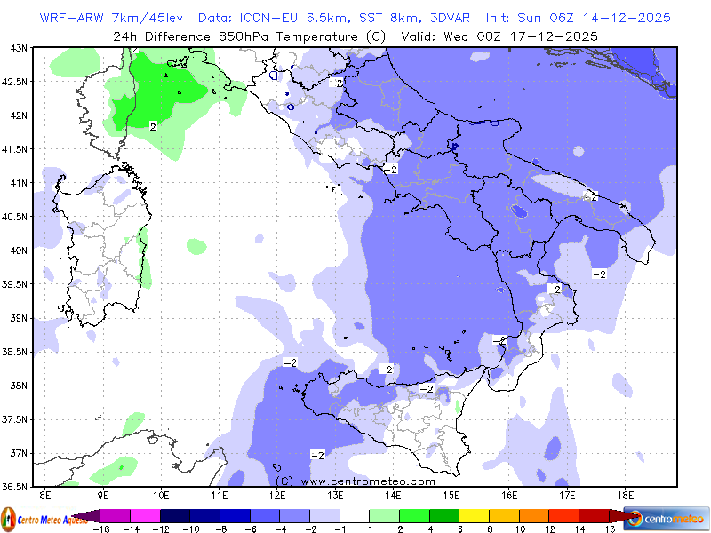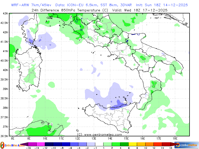 In questa mappa del modello WRF-ARW (GFS) del Centro-Nord Italia, è rappresentata la differenza di... Leggi tutto...