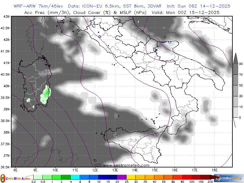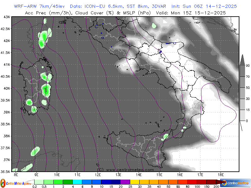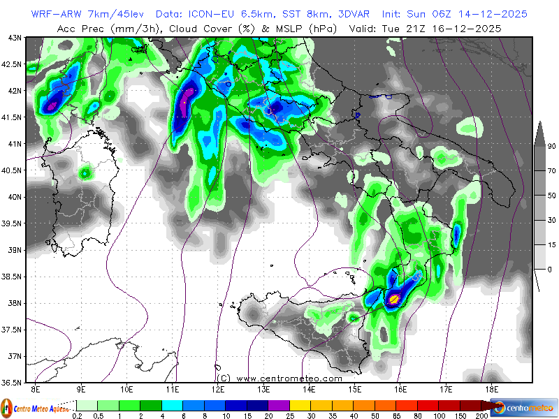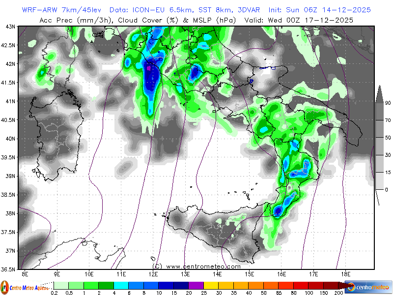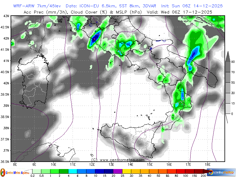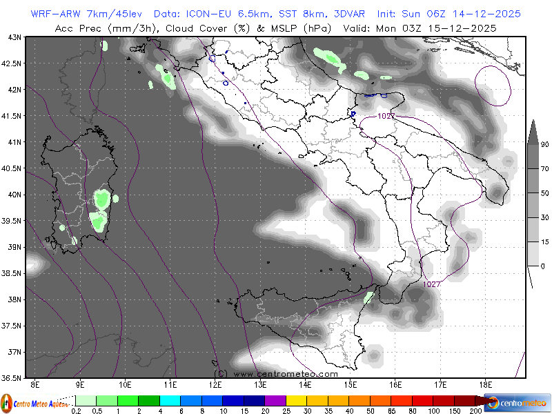 Modello fisico numerico WRF-ARW, inizializzato su dati GFS, con l'accumulo di neve previsto sul... Leggi tutto...