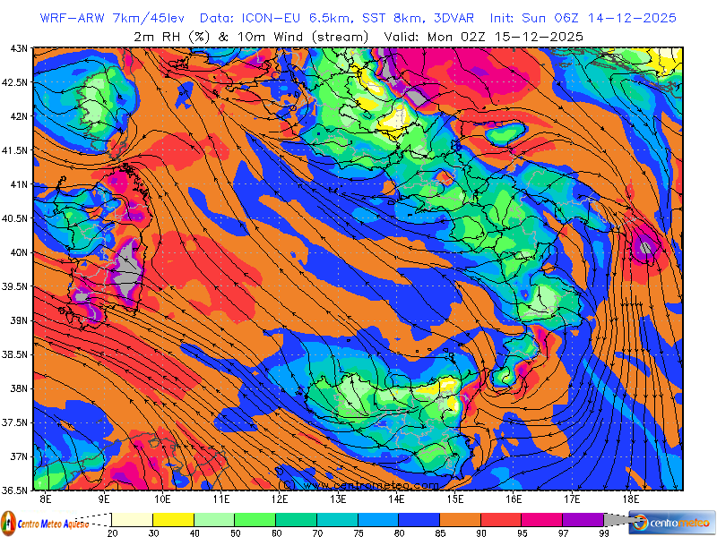 Immagine WRF MTS (Mean Thunder Storm) e Hail Index (centro-sud) - ARW by GFS