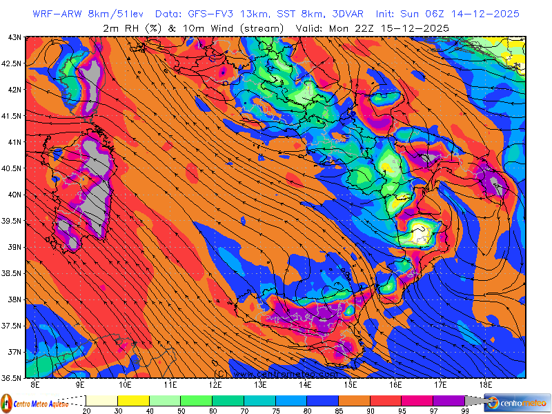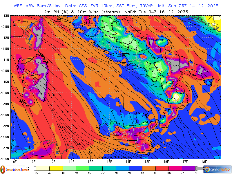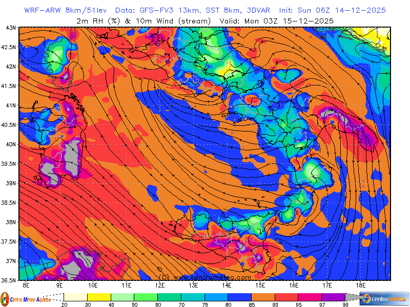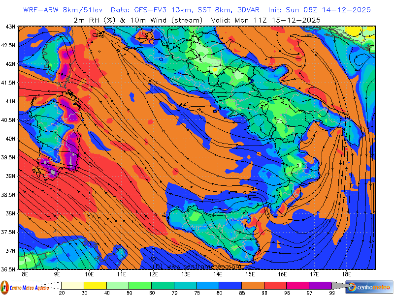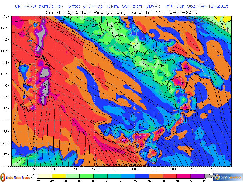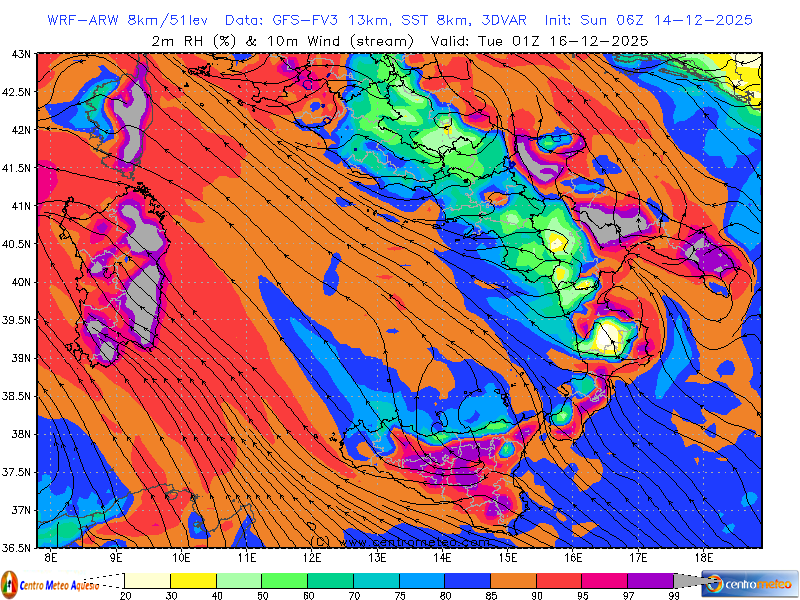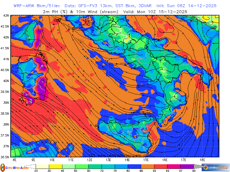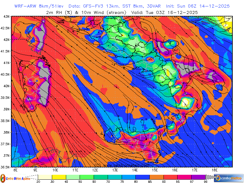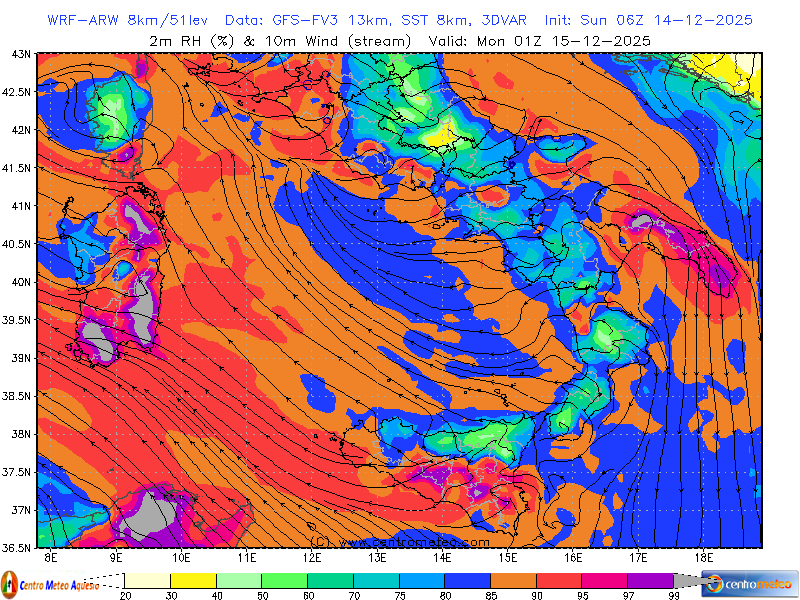 Modello WRF-ARW per il Centro-Nord con la carta dei venti previsti a 10 metri. Rappresentati sia i... Leggi tutto...
