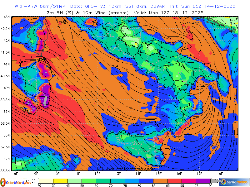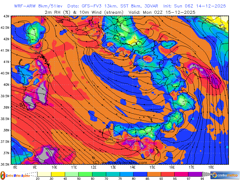 Immagine WRF Wind 10m (centro-nord) - ARW by ICON