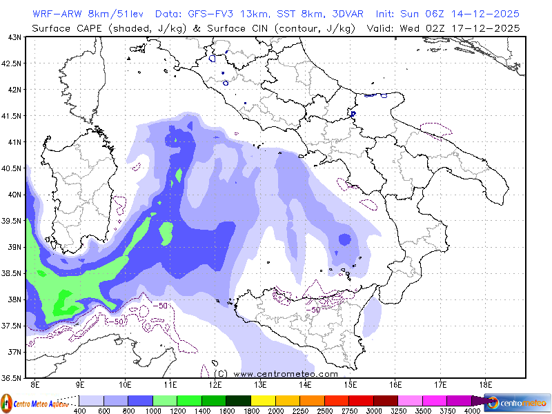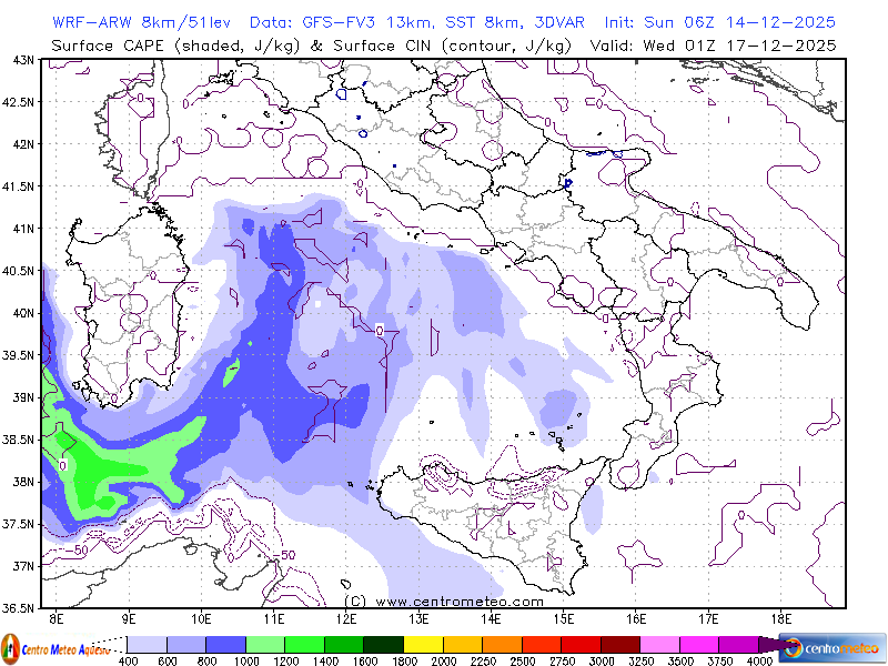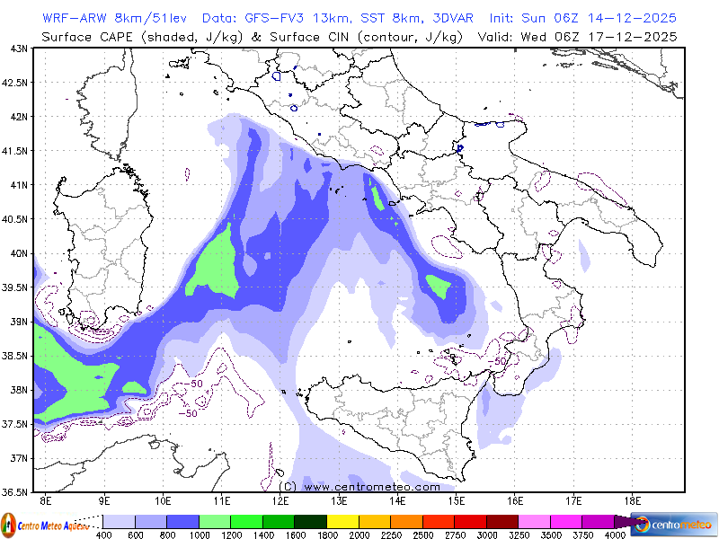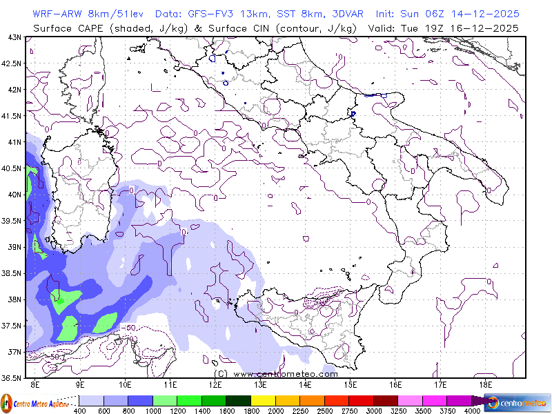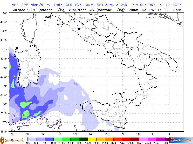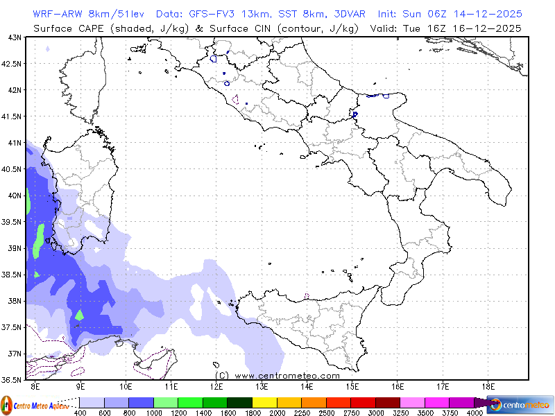 Modello WRF-NMM per il Centro-Sud con la carta dei venti previsti a 10 metri. Rappresentati sia i... Leggi tutto...