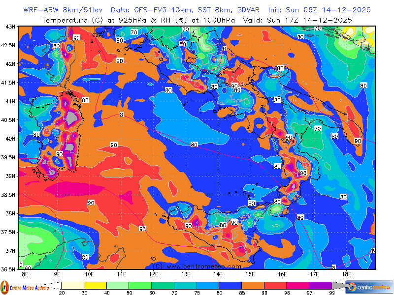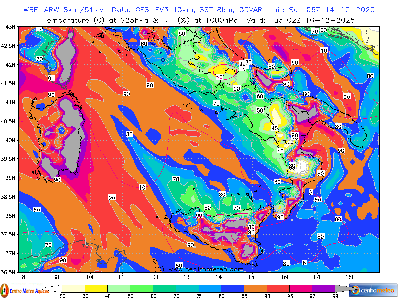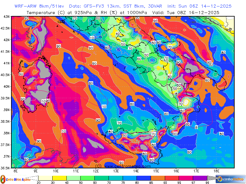 GFS 850hPa RH, dal modello americano l'umidità relativa prevista e il geopotenziale a 850hPa... Leggi tutto...