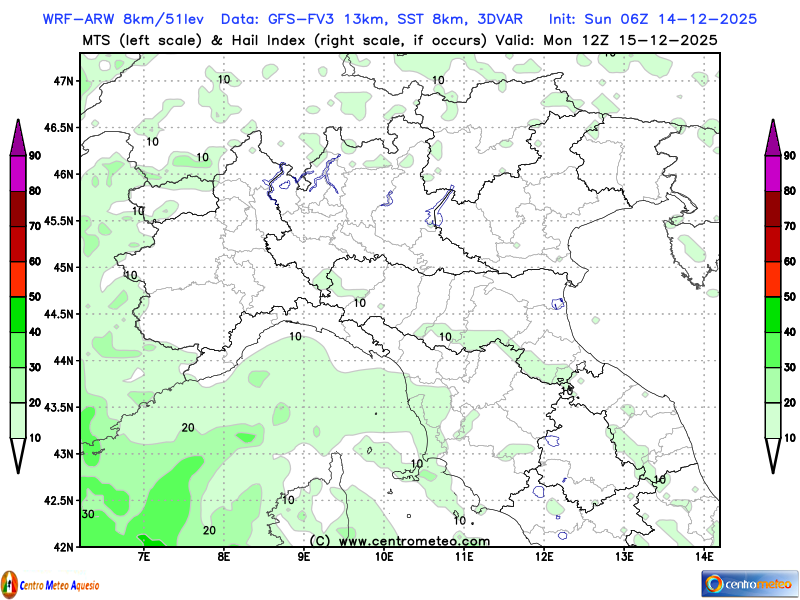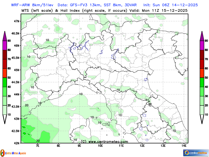 - Il materiale presente in questo sito è fornito così come è. In nessun caso centrometeo.com può ritenersi responsabile per qualsiasi danno anche solo ipoteticamente collegabile all'uso dello stesso. L'accesso alle tutte le informazioni è strettamente riservato ad uso personale, con il tassativo divieto di usi ed applicazioni professionali, operative, pubbliche o commerciali, senza autorizzazione esplicita da parte di centrometeo.com.