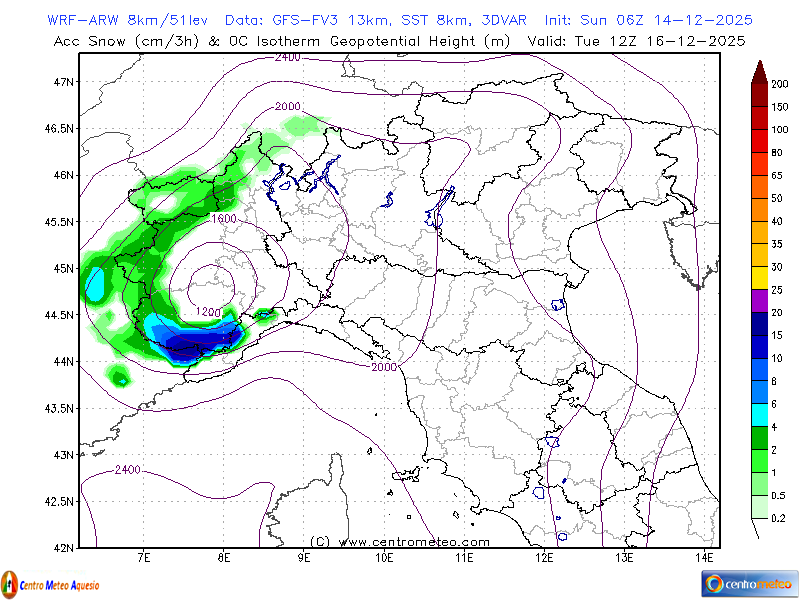 Modello WRF-ARW con la mappa, Centro-Sud Italia, della temperatura e della circolazione dei venti... Leggi tutto...
