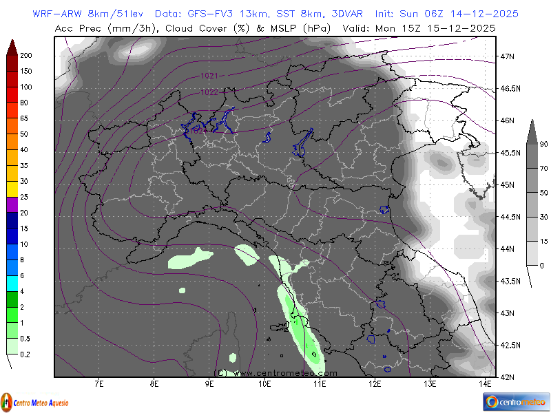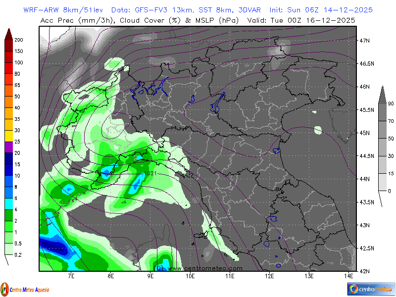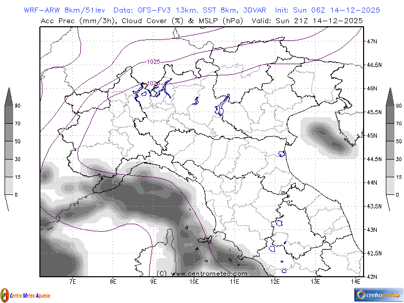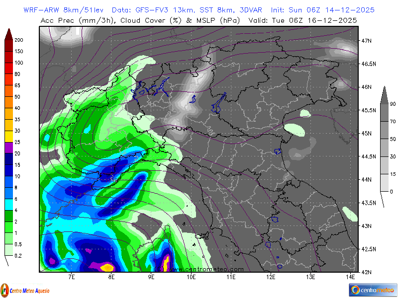 Modello WRF-ARW (GFS) con la tipica carta, qui per il Centro-Sud, dei venti previsti a 10 metri e... Leggi tutto...