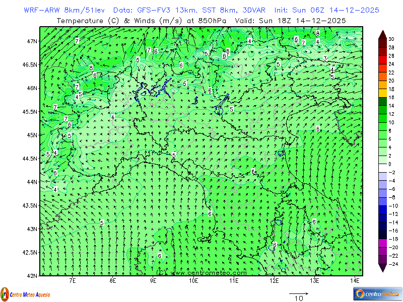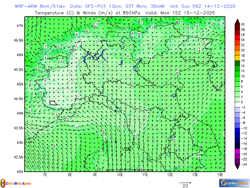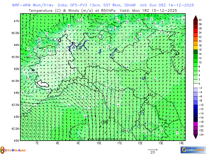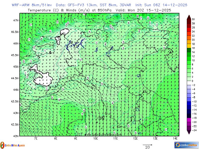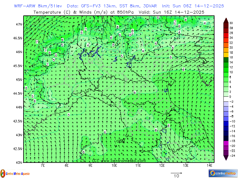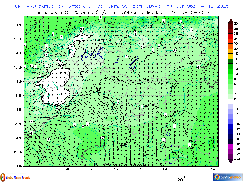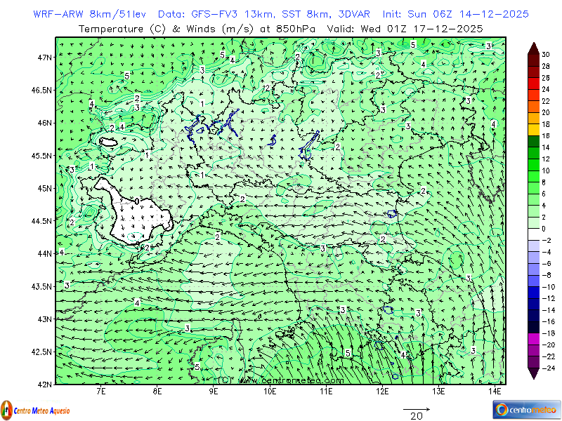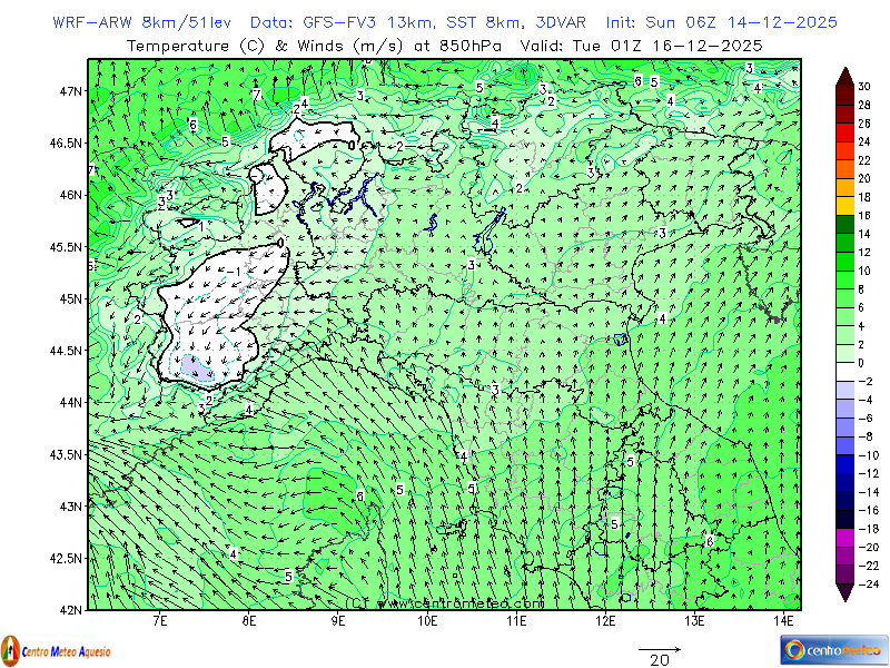 Mappa sull'Italia del modello WRF con altezza dello zero termico e l'accumulo di neve (in cm) nelle... Leggi tutto...