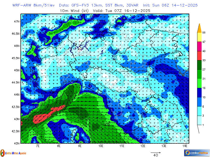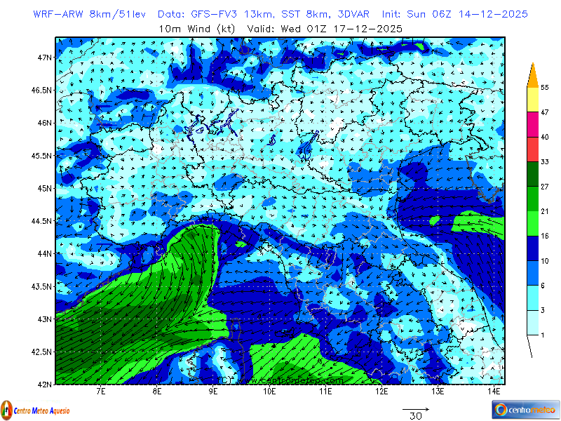 Modello WRF-NMM-8km (dati GFS) con la mappa sull'Italia di due tipici indici termodinamici: il CAPE... Leggi tutto...