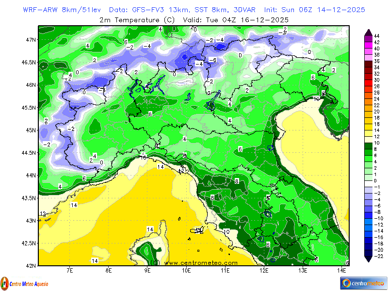 Immagine WRF MSLP 12hPrec (ita) - 7km ARW by GFS
