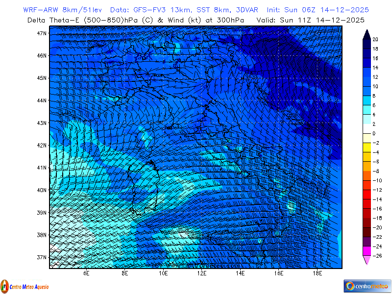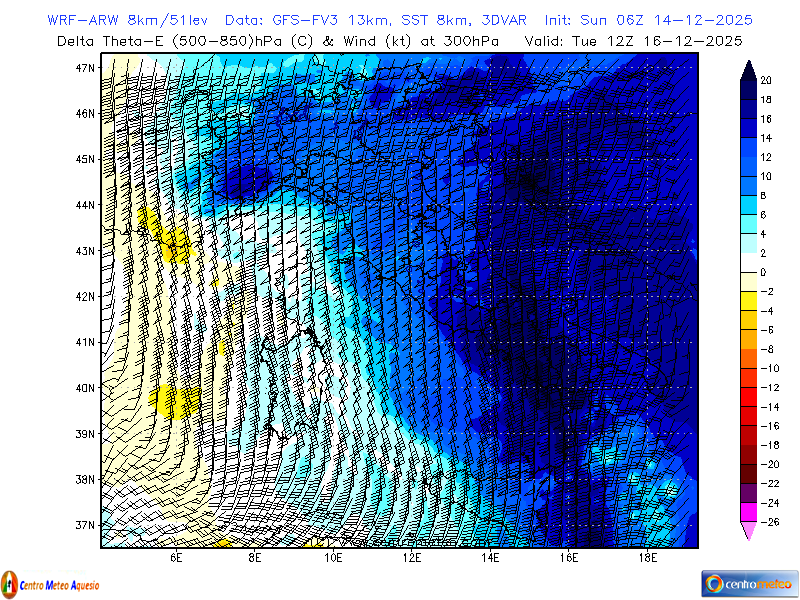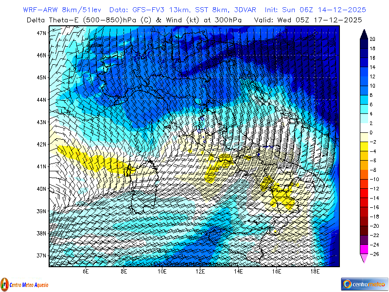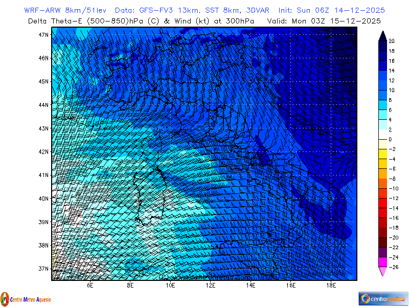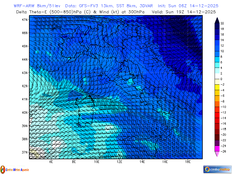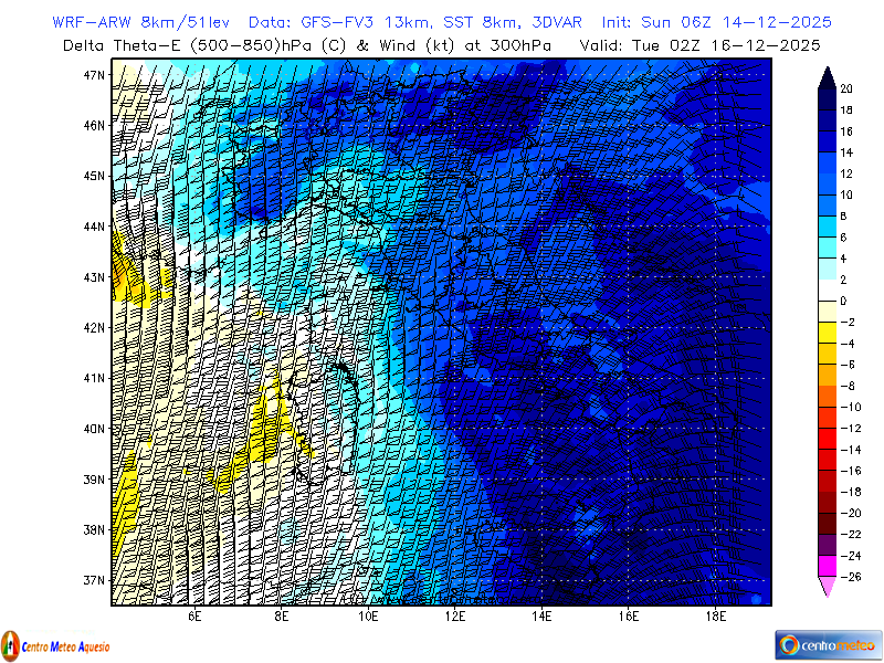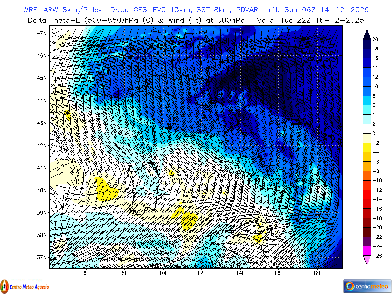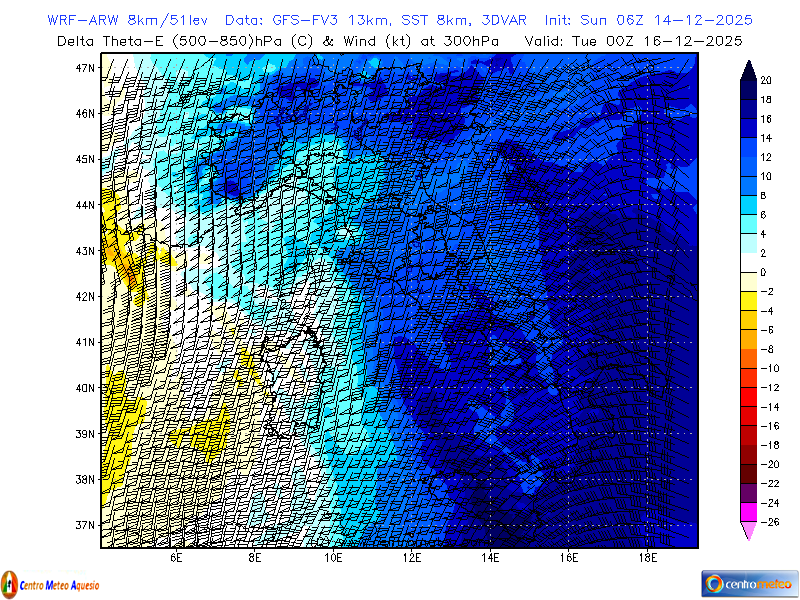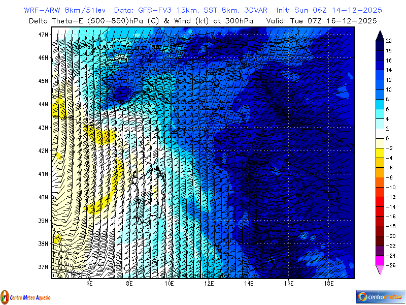 Mappa sull'Italia del modello WRF-ARW (GFS) con altri due classici indici termodinamici: il Total... Leggi tutto...