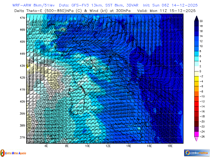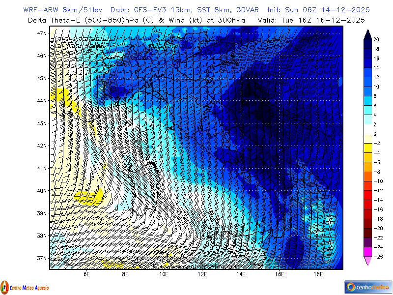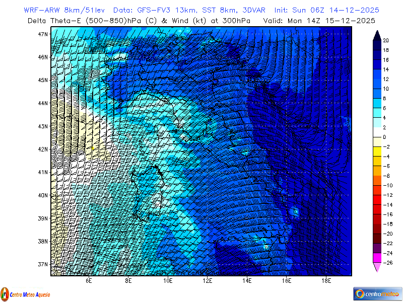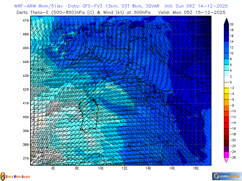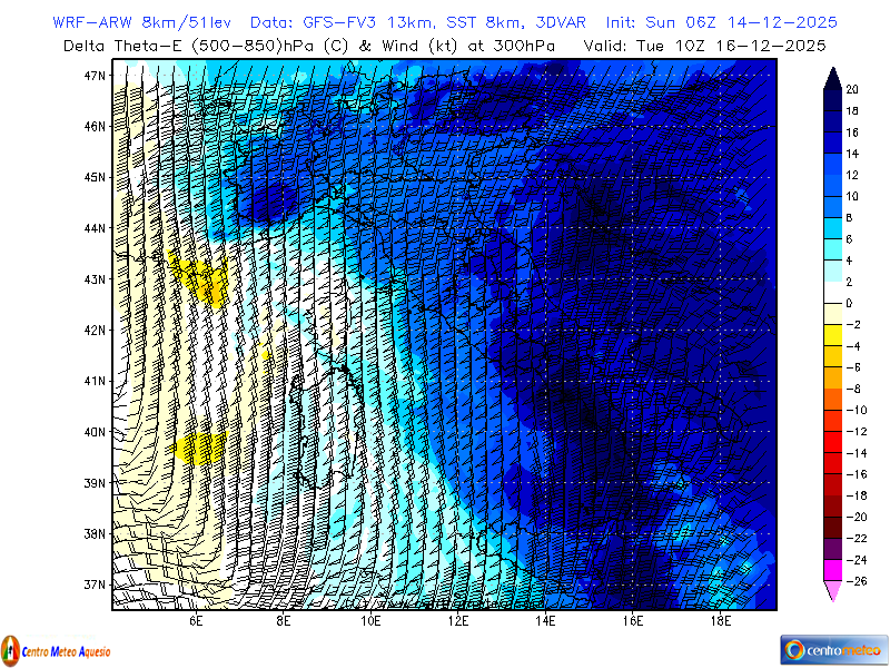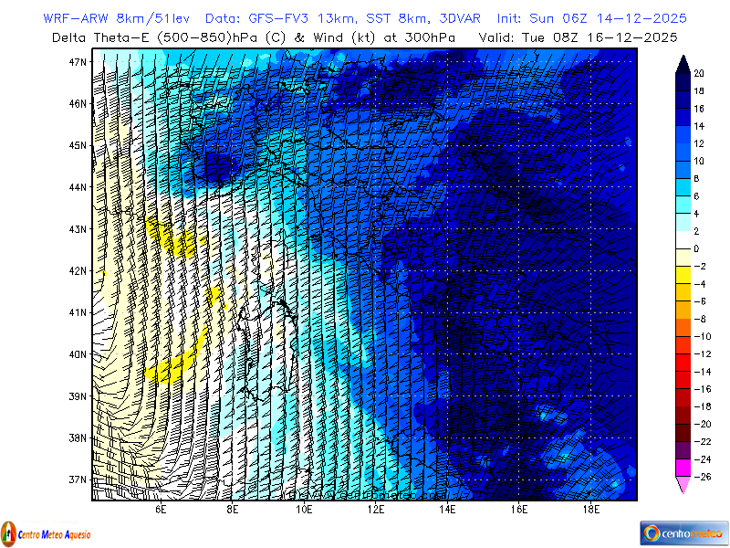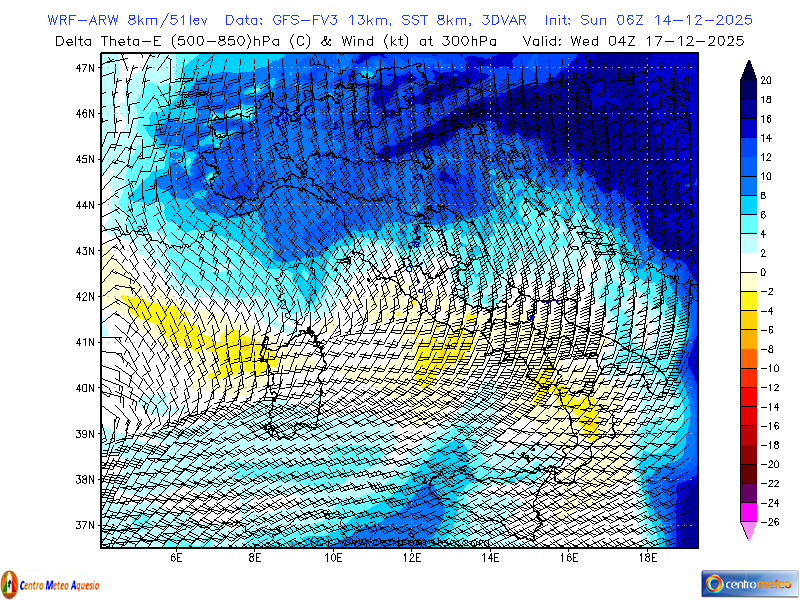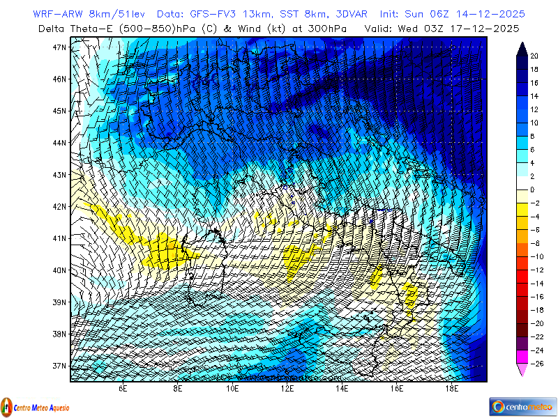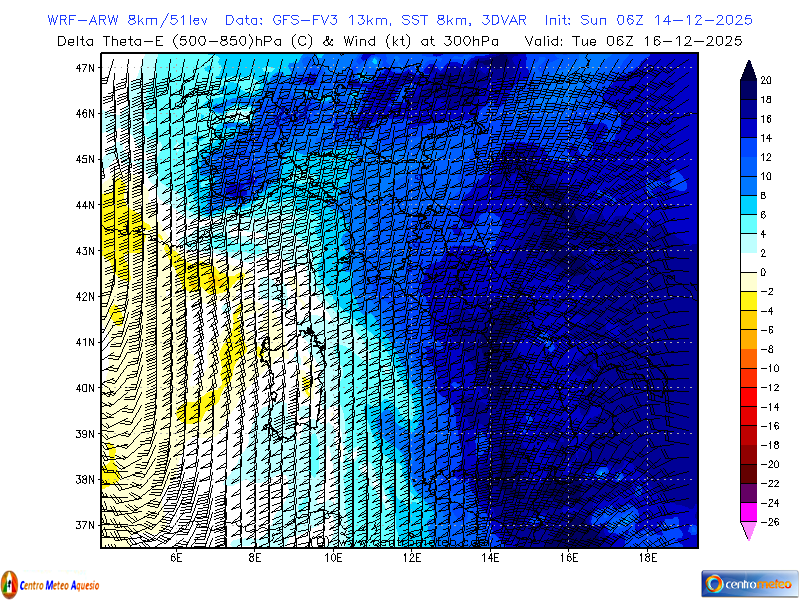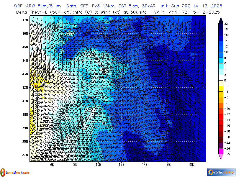 Mappa sull'Italia del modello WRF-ARW (GFS) con altri due classici indici termodinamici: il Total... Leggi tutto...