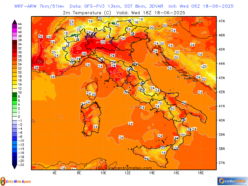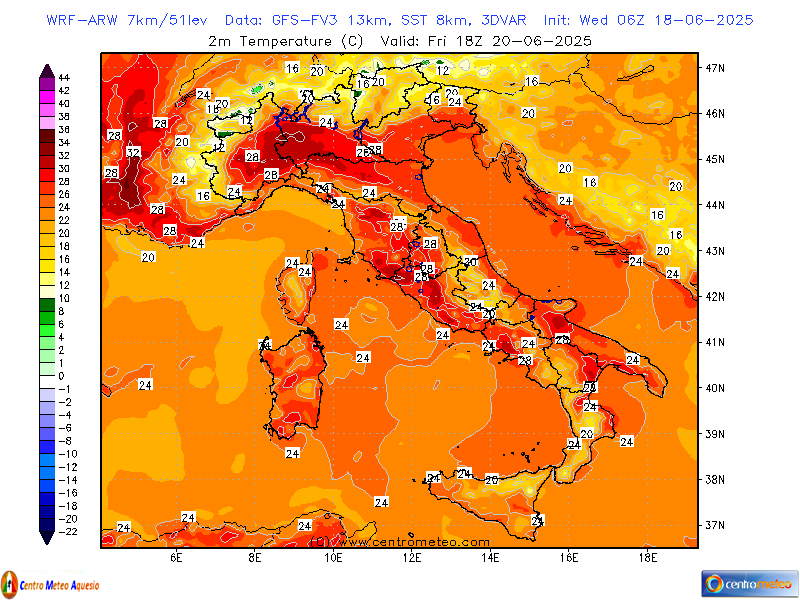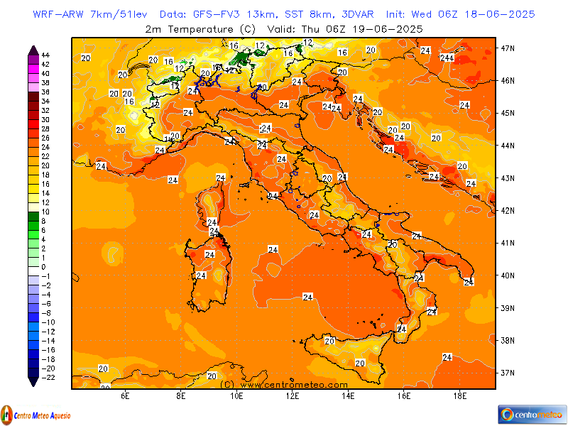 Mappa per il centro-sud italia del modello WRF ARW con l'altezza dello zero termico e l'accumulo... Leggi tutto...