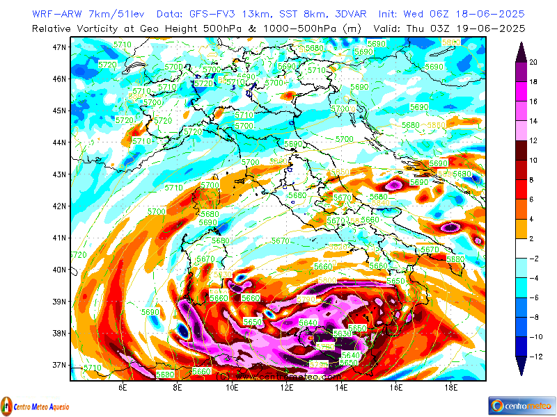 Mappa sull'Italia del modello WRF-ARW con altri due classici indici termodinamici: il Total Totals... Leggi tutto...