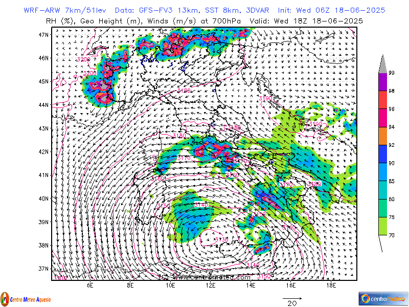 In questa mappa del modello WRF-ARW del Centro-Sud Italia, è rappresentata la differenza di... Leggi tutto...