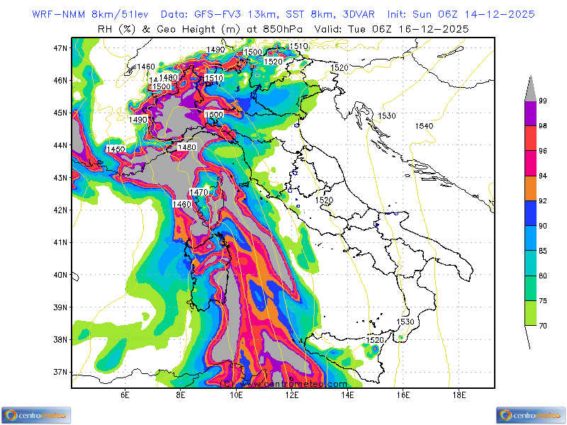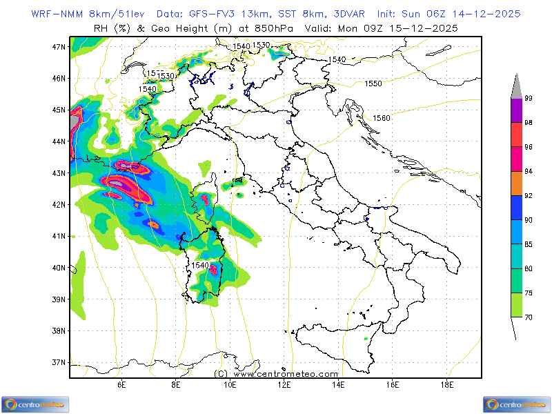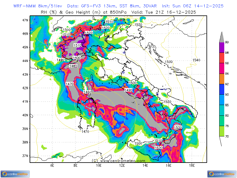Modello WRF-ARW con la mappa per il Centro-Sud della temperatura e dell'altezza geopotenziale a 500... Leggi tutto...