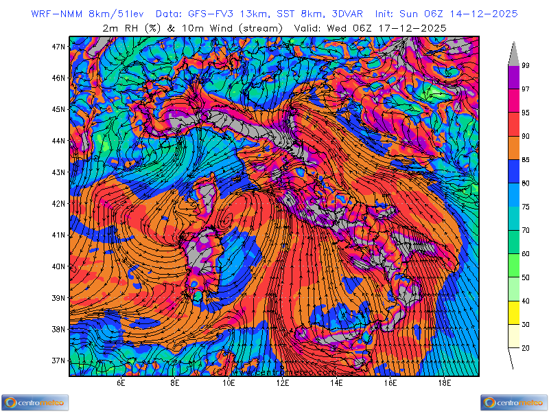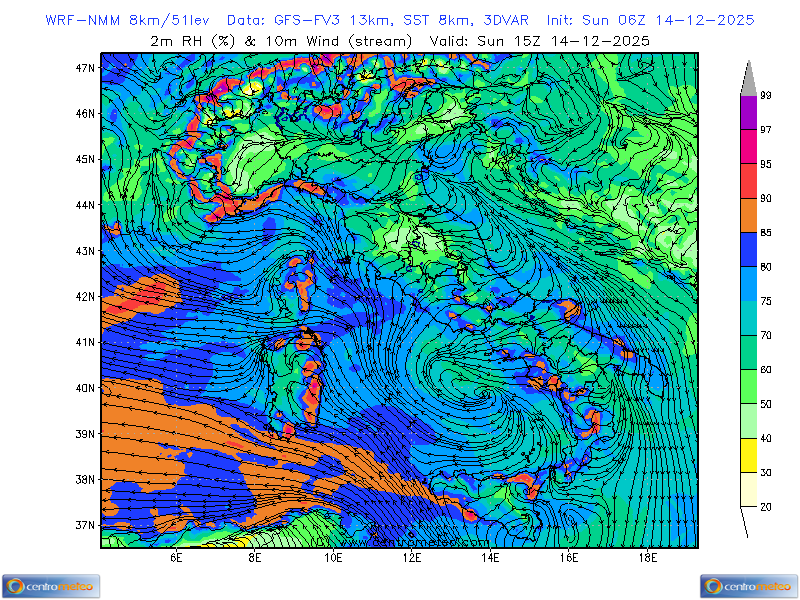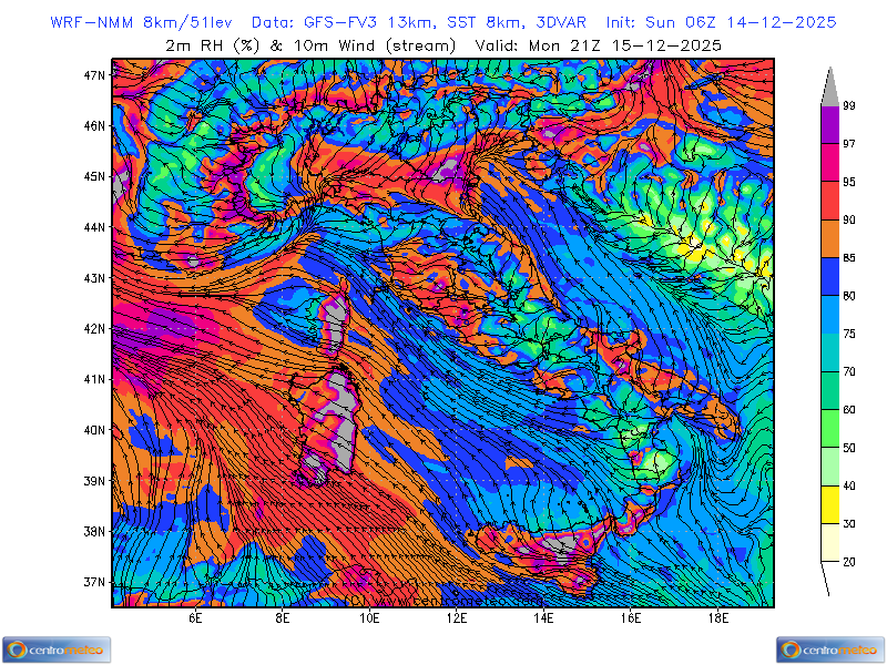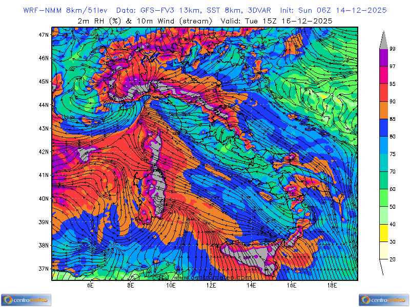 GFS 850hPa RH, dal modello americano l'umidità relativa prevista e il geopotenziale a 850hPa... Leggi tutto...