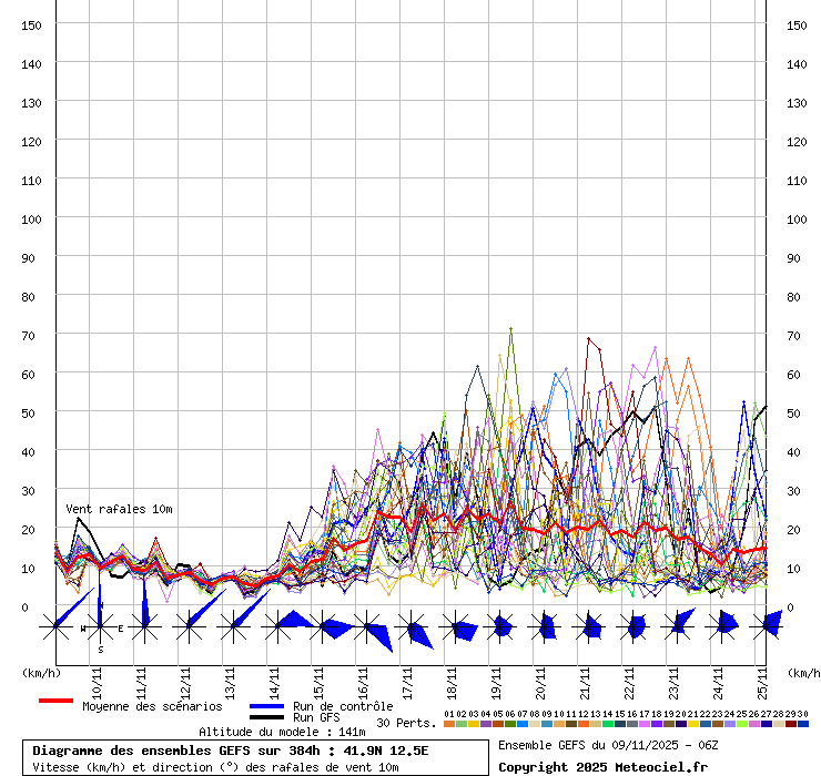 In queste mappe gli "spaghetti" generati dalla tecnica Ensemble per tutti i modelli matematici di cui si dispongono i dati, su località di vostra scelta. La tecnica Ensemble consiste nell'effettuare più corse (più quella di controllo) modificando di poco e opportunamente le condizioni iniziali inserite nei modelli stessi per verificare variazioni e affidabilità nell'evoluzione prevista. Laddove le soluzioni tendono ad "addensarsi" la prognosi sarà più probabile.