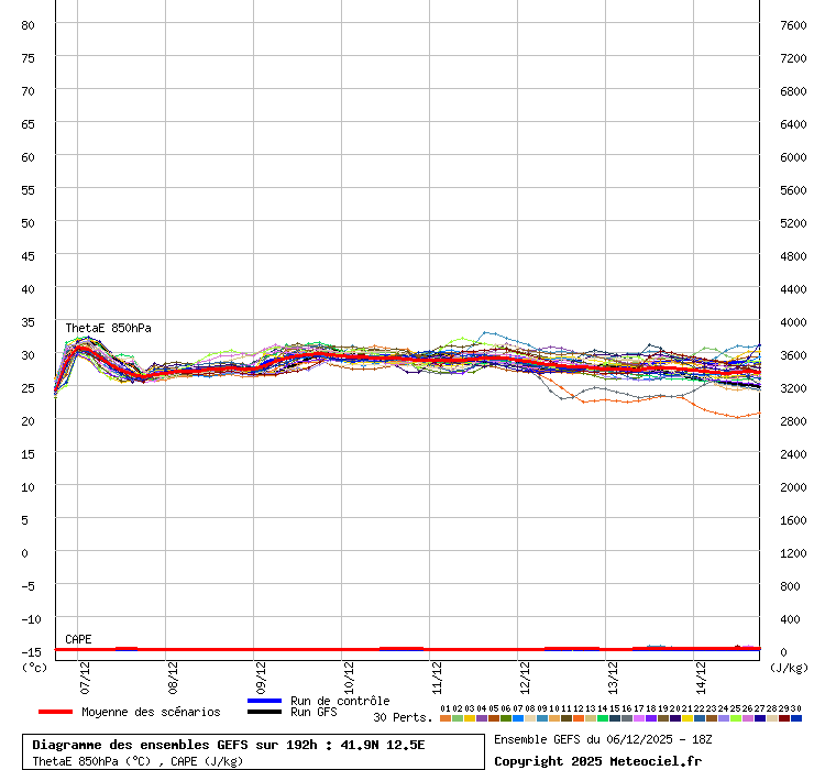 In queste mappe gli "spaghetti" generati dalla tecnica Ensemble per tutti i modelli matematici di cui si dispongono i dati, su località di vostra scelta. La tecnica Ensemble consiste nell'effettuare più corse (più quella di controllo) modificando di poco e opportunamente le condizioni iniziali inserite nei modelli stessi per verificare variazioni e affidabilità nell'evoluzione prevista. Laddove le soluzioni tendono ad "addensarsi" la prognosi sarà più probabile.