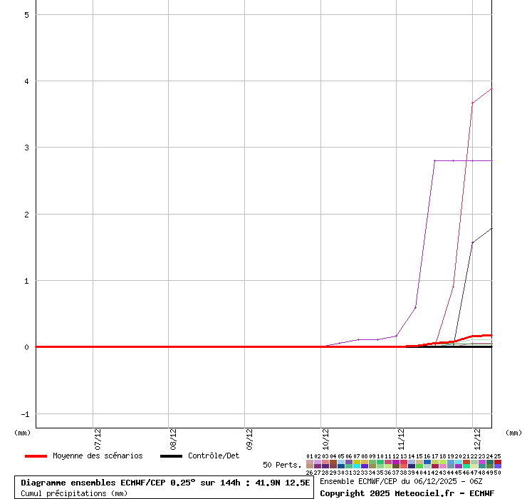 In queste mappe gli "spaghetti" generati dalla tecnica Ensemble per tutti i modelli matematici di cui si dispongono i dati, su località di vostra scelta. La tecnica Ensemble consiste nell'effettuare più corse (più quella di controllo) modificando di poco e opportunamente le condizioni iniziali inserite nei modelli stessi per verificare variazioni e affidabilità nell'evoluzione prevista. Laddove le soluzioni tendono ad "addensarsi" la prognosi sarà più probabile.
