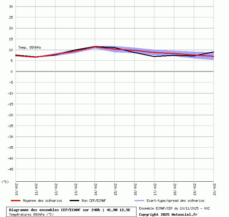 In queste mappe gli "spaghetti" generati dalla tecnica Ensemble per tutti i modelli matematici di cui si dispongono i dati, su località di vostra scelta. La tecnica Ensemble consiste nell'effettuare più corse (più quella di controllo) modificando di poco e opportunamente le condizioni iniziali inserite nei modelli stessi per verificare variazioni e affidabilità nell'evoluzione prevista. Laddove le soluzioni tendono ad "addensarsi" la prognosi sarà più probabile.