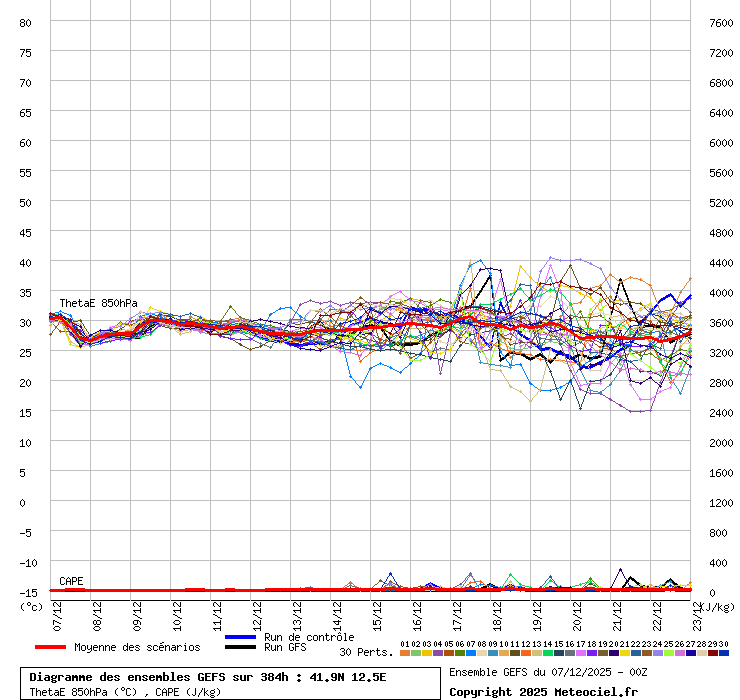 In queste mappe gli "spaghetti" generati dalla tecnica Ensemble per tutti i modelli matematici di cui si dispongono i dati, su località di vostra scelta. La tecnica Ensemble consiste nell'effettuare più corse (più quella di controllo) modificando di poco e opportunamente le condizioni iniziali inserite nei modelli stessi per verificare variazioni e affidabilità nell'evoluzione prevista. Laddove le soluzioni tendono ad "addensarsi" la prognosi sarà più probabile.
