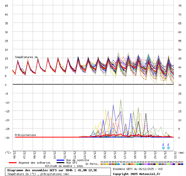 In queste mappe gli "spaghetti" generati dalla tecnica Ensemble per tutti i modelli matematici di cui si dispongono i dati, su località di vostra scelta. La tecnica Ensemble consiste nell'effettuare più corse (più quella di controllo) modificando di poco e opportunamente le condizioni iniziali inserite nei modelli stessi per verificare variazioni e affidabilità nell'evoluzione prevista. Laddove le soluzioni tendono ad "addensarsi" la prognosi sarà più probabile.
