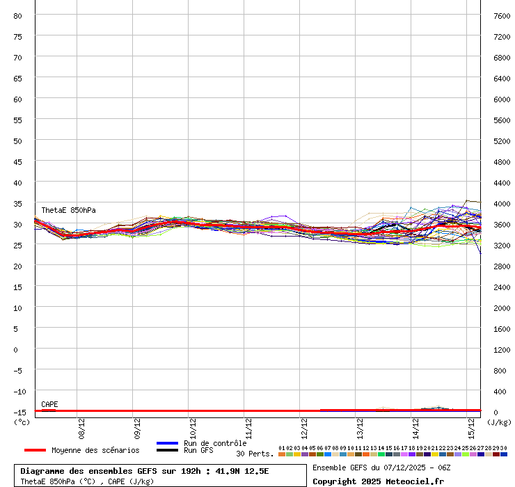 In queste mappe gli "spaghetti" generati dalla tecnica Ensemble per tutti i modelli matematici di cui si dispongono i dati, su località di vostra scelta. La tecnica Ensemble consiste nell'effettuare più corse (più quella di controllo) modificando di poco e opportunamente le condizioni iniziali inserite nei modelli stessi per verificare variazioni e affidabilità nell'evoluzione prevista. Laddove le soluzioni tendono ad "addensarsi" la prognosi sarà più probabile.