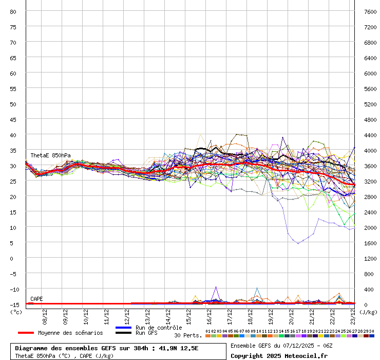 In queste mappe gli "spaghetti" generati dalla tecnica Ensemble per tutti i modelli matematici di cui si dispongono i dati, su località di vostra scelta. La tecnica Ensemble consiste nell'effettuare più corse (più quella di controllo) modificando di poco e opportunamente le condizioni iniziali inserite nei modelli stessi per verificare variazioni e affidabilità nell'evoluzione prevista. Laddove le soluzioni tendono ad "addensarsi" la prognosi sarà più probabile.