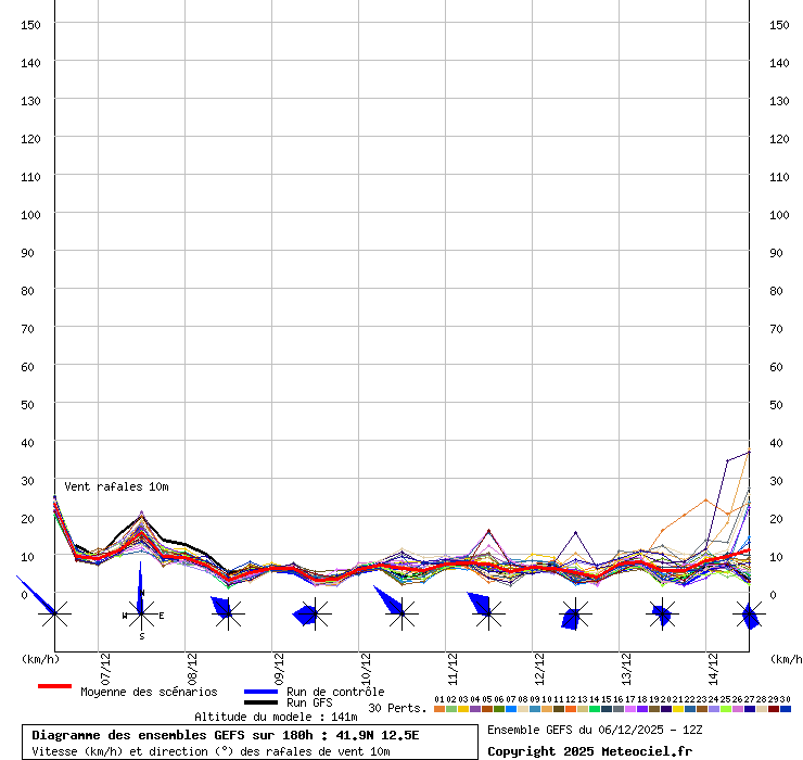 In queste mappe gli "spaghetti" generati dalla tecnica Ensemble per tutti i modelli matematici di cui si dispongono i dati, su località di vostra scelta. La tecnica Ensemble consiste nell'effettuare più corse (più quella di controllo) modificando di poco e opportunamente le condizioni iniziali inserite nei modelli stessi per verificare variazioni e affidabilità nell'evoluzione prevista. Laddove le soluzioni tendono ad "addensarsi" la prognosi sarà più probabile.