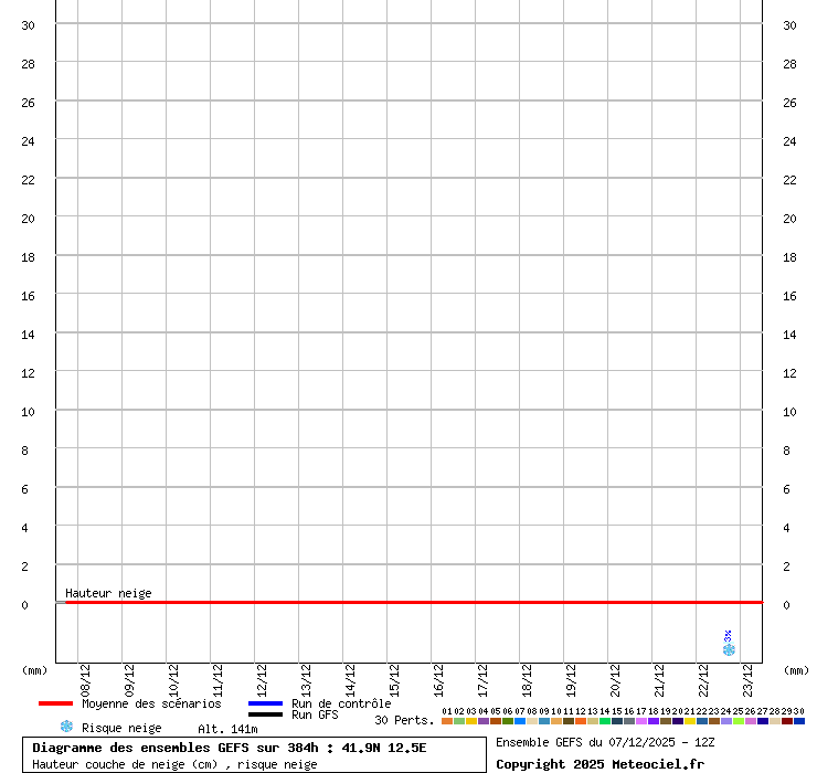 In queste mappe gli "spaghetti" generati dalla tecnica Ensemble per tutti i modelli matematici di cui si dispongono i dati, su località di vostra scelta. La tecnica Ensemble consiste nell'effettuare più corse (più quella di controllo) modificando di poco e opportunamente le condizioni iniziali inserite nei modelli stessi per verificare variazioni e affidabilità nell'evoluzione prevista. Laddove le soluzioni tendono ad "addensarsi" la prognosi sarà più probabile.