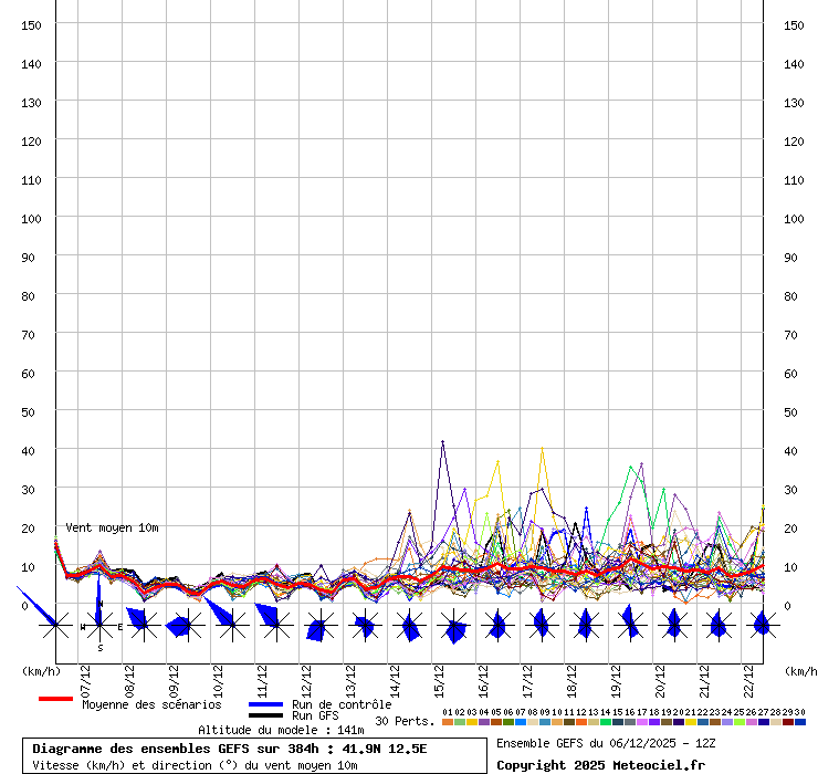 In queste mappe gli "spaghetti" generati dalla tecnica Ensemble per tutti i modelli matematici di cui si dispongono i dati, su località di vostra scelta. La tecnica Ensemble consiste nell'effettuare più corse (più quella di controllo) modificando di poco e opportunamente le condizioni iniziali inserite nei modelli stessi per verificare variazioni e affidabilità nell'evoluzione prevista. Laddove le soluzioni tendono ad "addensarsi" la prognosi sarà più probabile.