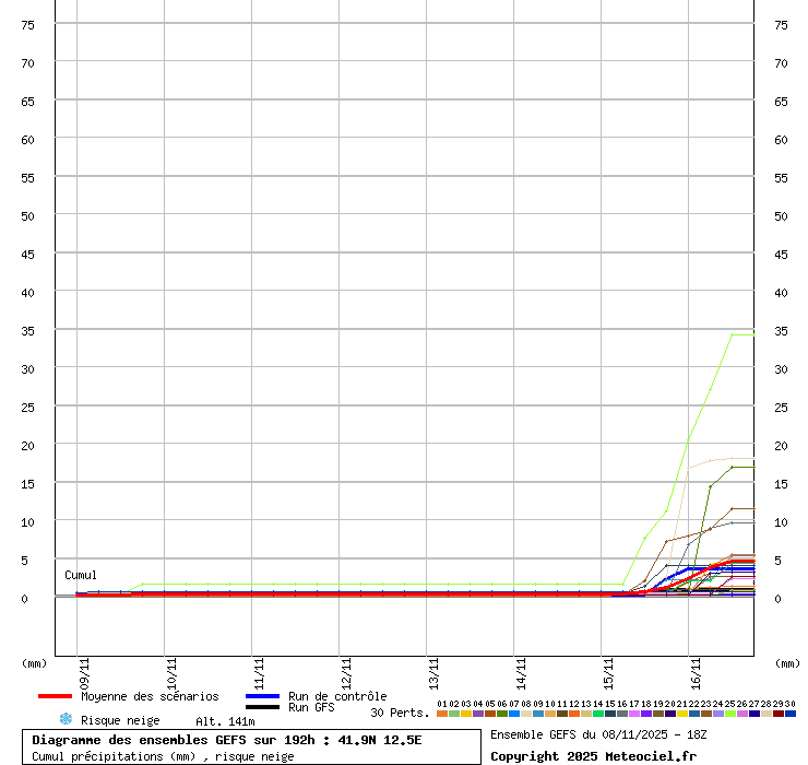 In queste mappe gli "spaghetti" generati dalla tecnica Ensemble per tutti i modelli matematici di cui si dispongono i dati, su località di vostra scelta. La tecnica Ensemble consiste nell'effettuare più corse (più quella di controllo) modificando di poco e opportunamente le condizioni iniziali inserite nei modelli stessi per verificare variazioni e affidabilità nell'evoluzione prevista. Laddove le soluzioni tendono ad "addensarsi" la prognosi sarà più probabile.