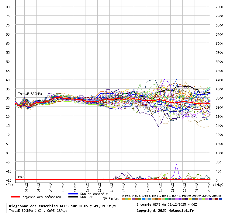 In queste mappe gli "spaghetti" generati dalla tecnica Ensemble per tutti i modelli matematici di cui si dispongono i dati, su località di vostra scelta. La tecnica Ensemble consiste nell'effettuare più corse (più quella di controllo) modificando di poco e opportunamente le condizioni iniziali inserite nei modelli stessi per verificare variazioni e affidabilità nell'evoluzione prevista. Laddove le soluzioni tendono ad "addensarsi" la prognosi sarà più probabile.